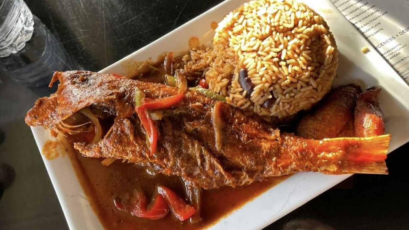 Whole fish simmered in a rich, savory brown stew sauce with island spices.